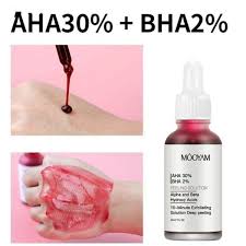 AHA: آلفا هیدروکسی اسید یکی از مواد حلال در آب است که می تواند با لایه برداری سطحی، سلول های مرده را از بین برده و کمتر موجب قرمزی پوست شما گردد. به همین دلیل است که میزان AHA بیشتر مورد استفاده قرار می گیرد. حاوی %30