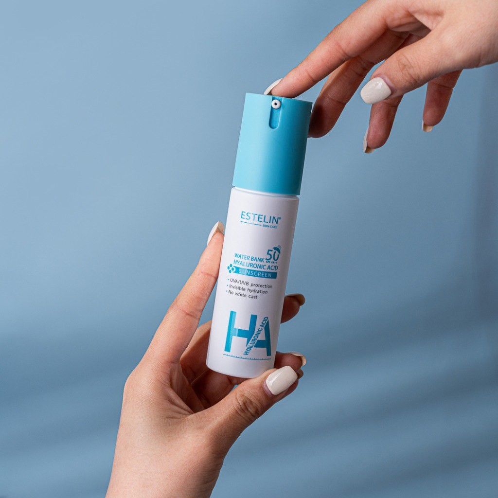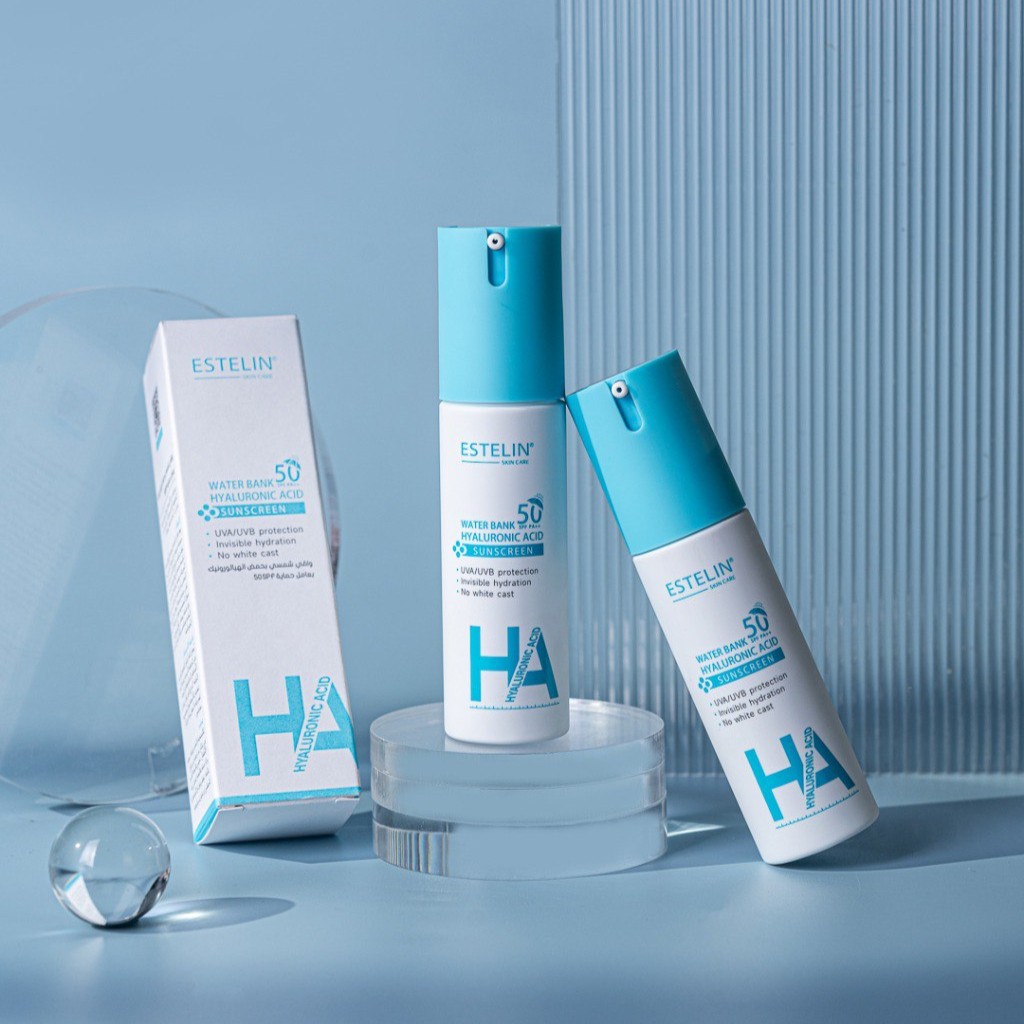 ضدآفتاب آبرسان هیالورونیک اسید واتر بانک استلین حجم 60گرم Estelin Water Bank Hyaluronic Acid Sunscreen++SPF50 PA